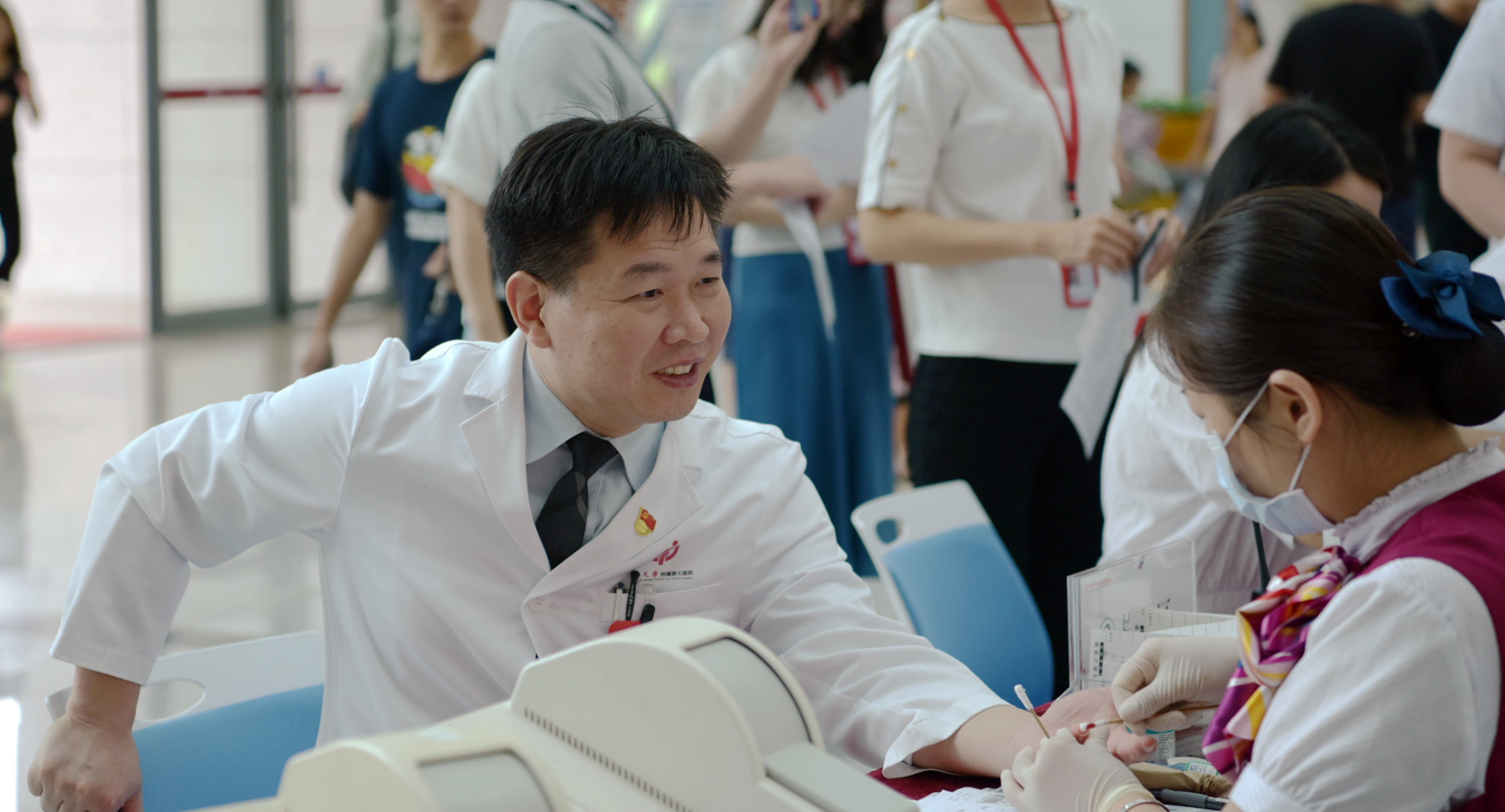 ▲ 耐心工作的血站工作人员以及志愿者