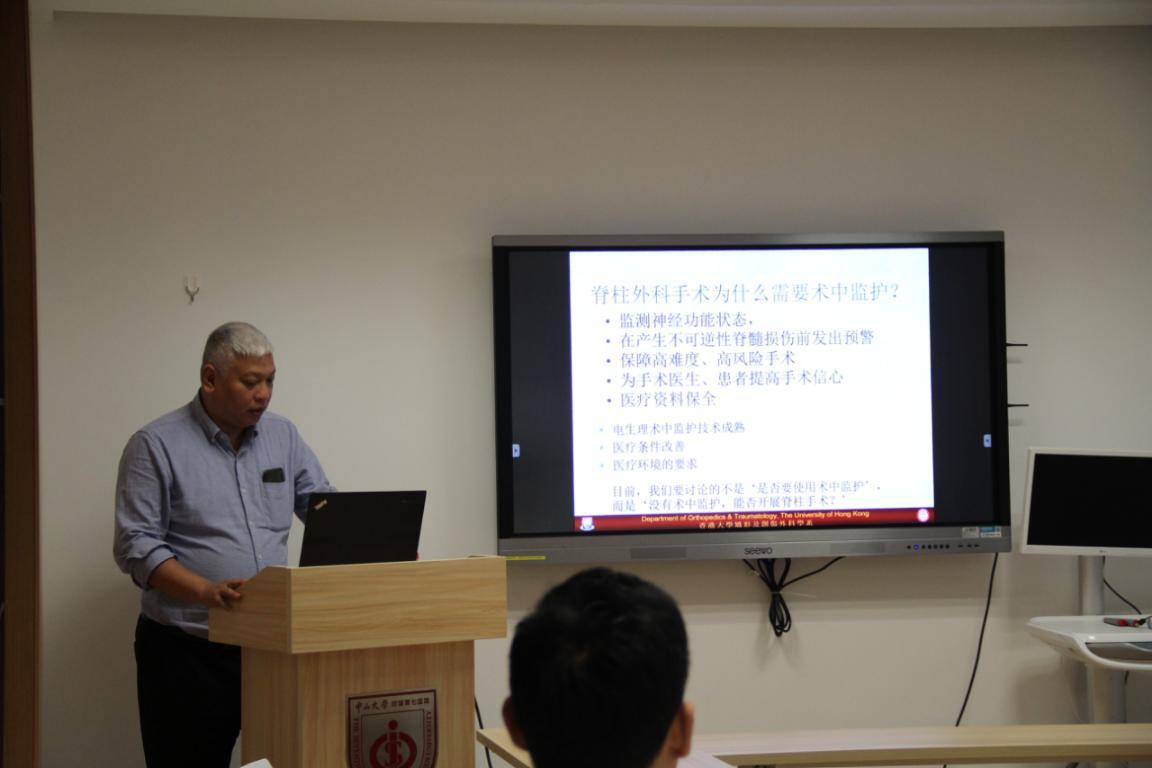 为了“三名工程”落户深圳真正取得实效,让深圳市民在家门口体验国内一流骨科专家团队的诊疗服务,2019年10月18日,在术中电生理监测仪正式到位我院骨科之际,中山七院骨科主任刘少喻教授邀请了香港大学的胡勇教授为我院骨科医生进行“骨科术中电生理监护的技巧与细节”的主题讲座。
