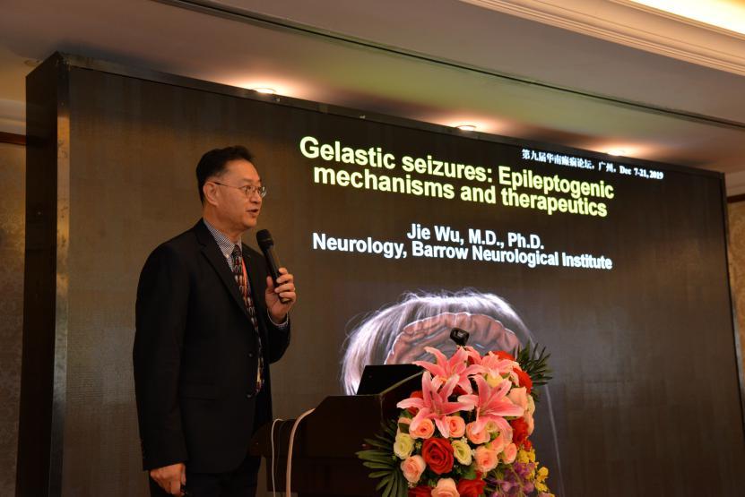 大会学术交流环节,来自国内外癫痫领域的专家学者分别发表精彩的学术演讲。美国圣约瑟夫医学中心、汕头大学医学院特聘教授吴杰教授向我们全面展示了痴笑癫痫患儿下丘脑肿瘤的病理细胞学结构及放电机制,以及药物治疗的新靶点;北京大学第一医院吴晔教授详细阐述了发育性/癫痫性脑病的定义、分类、诊断思路及精准治疗;广州医科大学附属第二医院廖卫平教授介绍了几个典型案例的基因检测结果的判读和致病机制探讨,以及潜在的治疗靶点;广州医科大学附属第二医院刘晓蓉教授分享了一个STXBP1基因突变致病的家系,并分析了其致病机理;中山一院陈子怡副教授从临床特点、脑电表现及机制等方面介绍了癫痫合并精神障碍患者的相关内容;广东三九医院郭强教授用丰富的案例向我们介绍了遗传相关癫痫的外科评估方法及如何选择适合手术的病例。