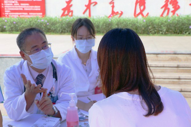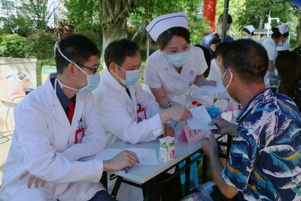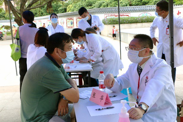 在光明新区玉塘街道办事处的支持下,9月19日上午,“中山七院临床一支部党日活动暨中山七院消化名医进社区”大型义诊活动在田寮社区党建公园顺利开展。活动严格按照疫情防控要求开展,为每一位参加义诊的群众测量体温、发放口罩等。