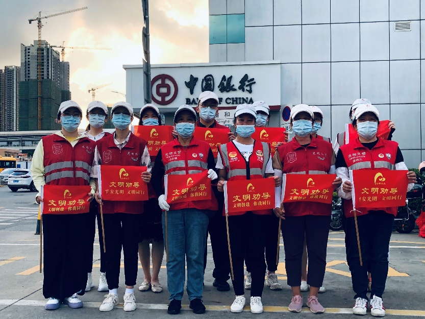 为助力深圳市文明城市创建工作,切实发挥党员先锋作用,营造文明礼让、规范出行的良好氛围。9月3日下午晚高峰时期,临床四党支部积极组织党员、积极分子共8人到光明大街农业银行门口开展文明交通劝导志愿服务活动。