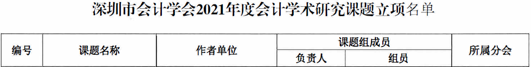 深圳市会计学会(AccountingSocietyofShenZhen,缩写为ASSZ)作为深圳市财政局主管的学术团体,为进一步推进深圳市财会理论研究和会计实务工作水平,准确把握新时代会计改革与发展新要求,发挥理论研究的基础性、前瞻性与导向性,更好地服务于深圳市财会行业发展和为相关政策制定提供理论支持,经市财政局批准,开展2021年度会计学术课题申报工作。