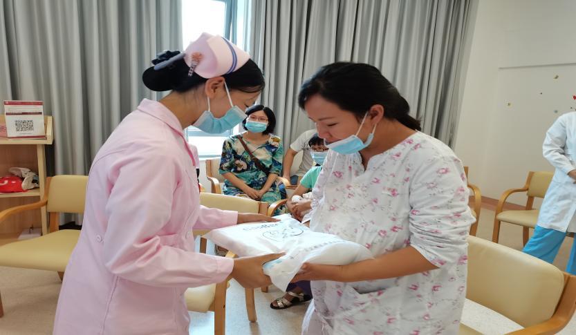 郑海洋护师为孕妈颁发奖品