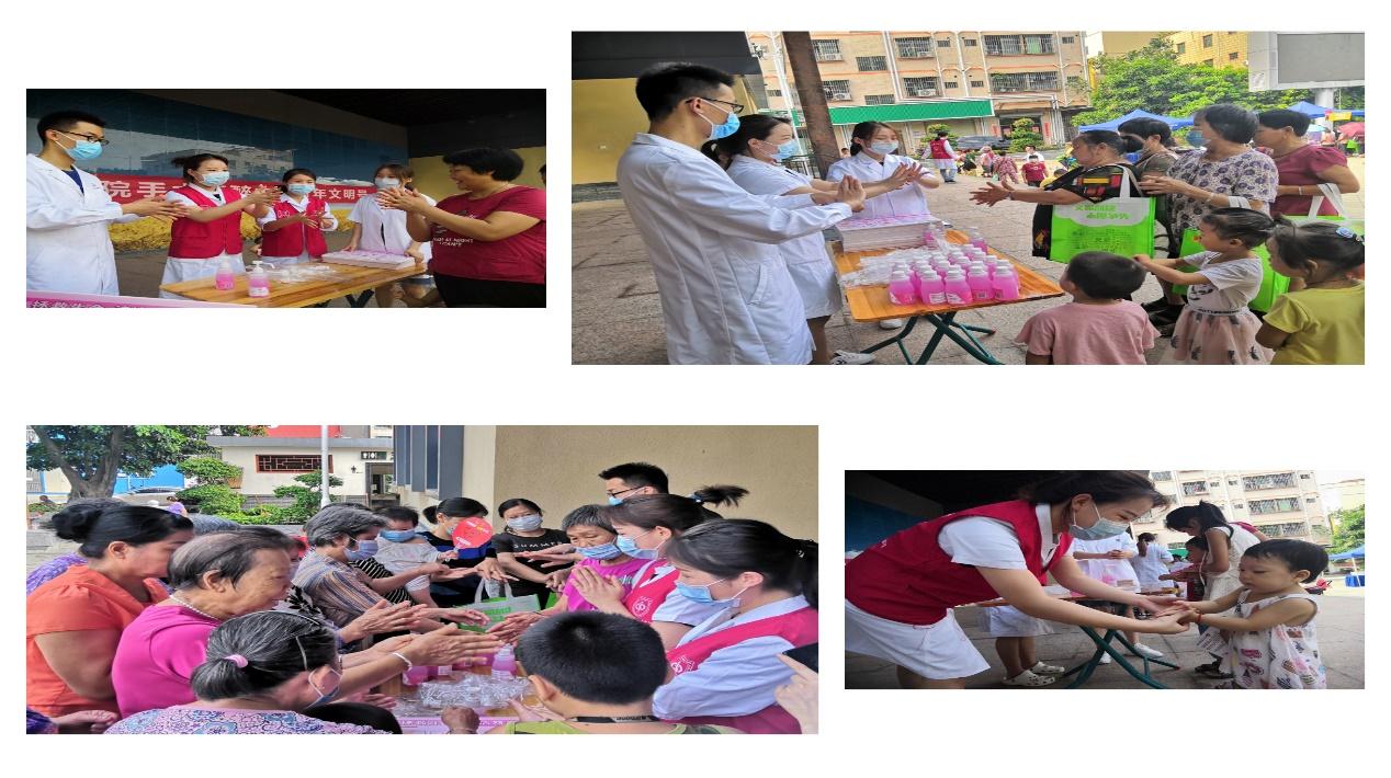 青年志愿者分为心肺复苏组和洗手组。心肺复苏组用通俗易懂的语言介绍了心肺复苏的适应症,现场示教了单人徒手心肺复苏的操作,并分析其操作要点,不少居民跃跃欲试,轮流在模型上实践。洗手组贴心指导大家如何正确执行“六步洗手法”,强调手卫生在新冠肺炎全球大范围流行环境下的重要性,并向居民发放免洗消毒液和宣传资料,引导大家养成良好的防疫习惯,提高防疫意识。为了让大家掌握正确的操作,青年志愿者们耐心细致地一遍又一遍地示范着,汗水早已浸湿衣衫,而他们朝气蓬勃、有责任有担当的形象也深深印在群众的心中。