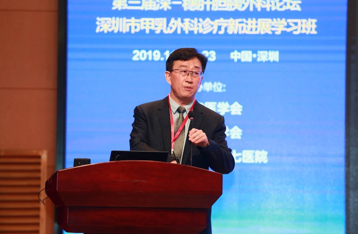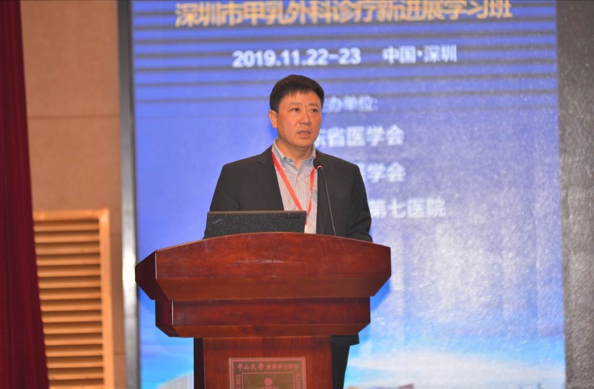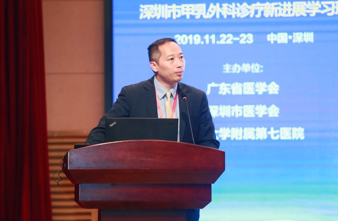11月23日上午,深圳市甲乳外科诊疗新进展学习班甲状腺外科专场在中山七院行政楼302会议室顺利召开,大会汇报了我院甲状腺外科工作情况,以及围绕甲状腺癌临床与基础研究、手术、放射性核素治疗、内分泌治疗等新进展进行深入探讨。大会介绍了甲状腺髓样癌作为少见病理类型的国内外指南诊治原则,而分化型甲状腺癌预后良好,更加注重手术入路的美观性、患者术后的生活质量及药物风险的防治。本次大会就分化型甲状腺癌的诊断、治疗、手术入路方式的新进展、术后内放射治疗研究的新进展进行深入探讨,并从内科角度审视、评估术后TSH激素抑制治疗的双风险系统,强调更加个体化的甲状腺肿瘤诊治理念。