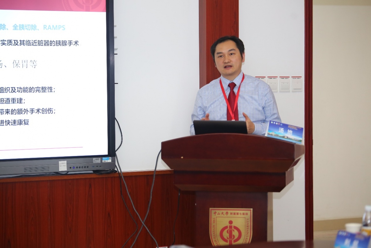 胰腺外科专场由李海军教授、蒋小峰教授、邰沁文教授主持,会议由胰腺外科领域内知名教授授课,围绕胰腺癌、良性胰腺肿物的手术处理技巧和原则、胰腺癌的早期诊断、胰腺疾病的手术方式和内镜治疗方式、腔镜下贲门周围穿支血管的精准离断等议题进行了深入探讨,为胰腺疾病的临床诊治提供有益的思路。
