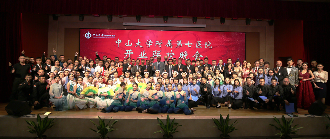 2018年5月11日是属于中山七院的特别日子,开业的礼炮从早上七点响到了晚上10点,从开诊仪式上启动院徽给出第一张患者诊疗卡开始,到夜晚的学术报告厅舞台上所有晚会工作人员合影,一整天下来,体现出七院员工的多才多艺:在诊间,我们专业严谨;出了诊间,我们才貌双全。