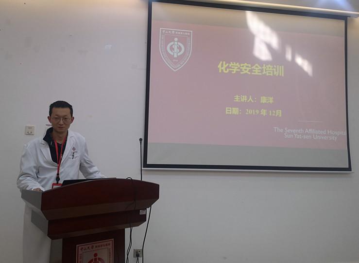 科研中心康洋副研究员讲述了实验室化学安全知识,从化学安全的重要性、存在的危险源及防护、化学品的管理及废弃物处理、实验操作注意事项及应急处理等几个方面进行讲课。他强调,化学品的正确使用是实验室建设与运行的重中之重,化学安全事故主要是由于不安全的环境和行为导致,要做到规范操作实验,做好化学用品严格管理,防患于未然。