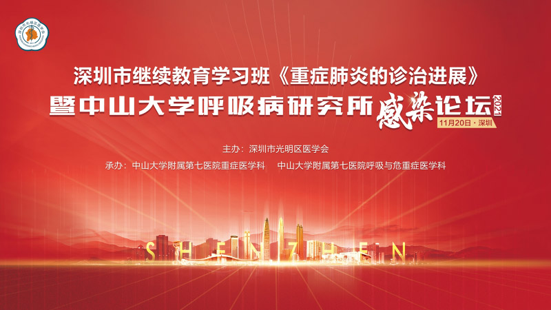 为推广重症肺炎诊治的新技术新理念,由深圳市光明区医学会、中山大学附属第七医院共同主办,中山大学附属第七医院重症医学科、呼吸与危重症医学科承办的深圳市继续教育学习班《重症肺炎的诊治进展》暨中山大学呼吸病研究所感染论坛于近日在我院隆重召开。