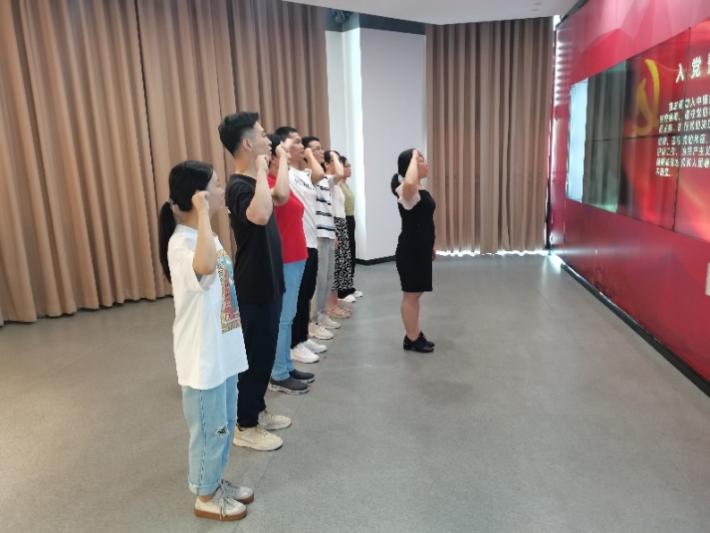 参观长廊后,在张丽丹支部书记的带领下,全体党员重温了入党誓词。当铿锵有力的入党誓词萦绕于耳,大家都心潮澎湃、感慨万分,再次深深感受到了党员的责任、使命和荣耀。