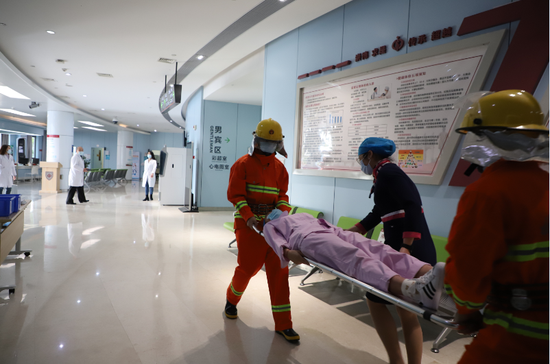保卫科、爱卫办以及安保部接到通知迅速赶到现场,及时控制了火情的蔓延扩大。健康管理中心的救护组积极组织人员向各安全出口疏散,同时在女宾区轮候检查中有一名孕妇,救护组安排专人陪同其安全撤离现场;人员疏散及贵重仪器转运组则对火灾所在区域的重要仪器和资料进行转运,抵达安全地点后,马上进行清点和现场保护。