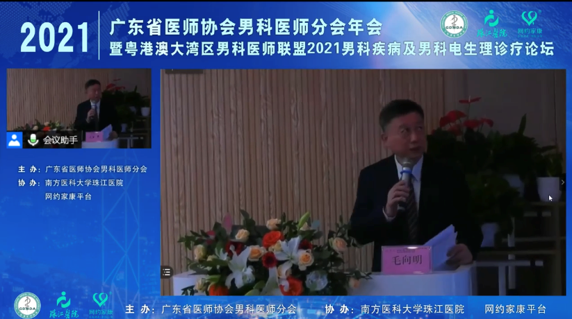 广东省医师协会男科医师分会年会暨粤港澳大湾区男科医师联盟2021男科疾病及男科电生理诊疗论坛于9月4日在广州顺利召开。会议采取线上线下相结合模式,广东省医师协会肖南方副秘书长、男科医师分会毛向明主任委员出席开幕式并致辞。大会邀请国内多位知名专家学者就男科相关疾病的重点难点、诊疗进展及电生理技术在男科相关疾病的临床应用及案例进行精彩的学术讲座及演示。