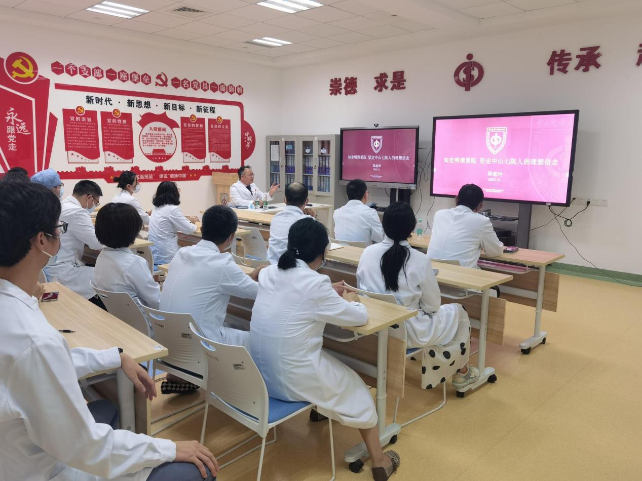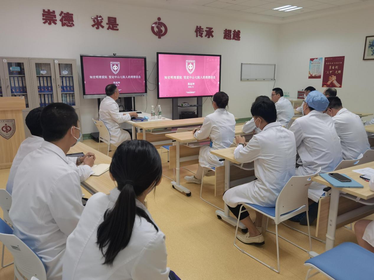 “中山七院是一个人杰地灵的好地方,这里必将成为名医的摇篮”。陈书记最后说道:“既然你有缘成为中山七院的一员,那就请坚定“来了就是中山七院人”的信念,不忘初心,牢记使命,为“树中大情怀,建世界名院”而努力奋斗。”