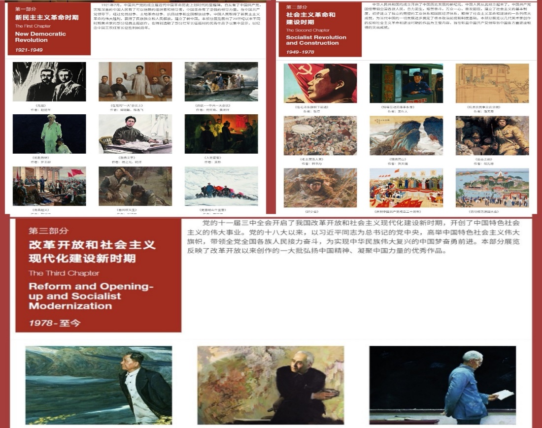 会议上,方烁同志通过PPT和专题展览网站展示及讲解了红色经典美术作品,其中,红色经典美术作品展览以恢宏壮观的气势和异彩纷呈的画卷,回顾和展示了中国共产党团结和带领全国各族人民进行革命、建设、改革的光辉历史和丰功伟绩。展览分为三个篇章:新民主主义革命时期(1921-1949)、社会主义革命和建设时期(1949-1978)、改革开放和社会主义现代化建设时期(19780-至今)