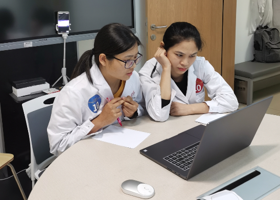 我院药学部派出的药师代表队由药学部王黎青副主任为领队,何莹和陈素华两名药师为选手。药学部高度重视,赛前进行了认真准备。此次晋级赛共四个环节,依次为处方审核对抗、排位淘汰、用药交代积分、及情景咨询风险。我院参赛的两位药师在第一轮处方审核对抗赛中以过硬的专业能力直接晋级到第三轮用药交代积分赛;在第三轮用药交代环节,何莹、陈素华两名药师以夯实的专业知识,清晰、完整地完成了处方用药交代的相关问题;在第四轮情景咨询环节,我院两位药师精彩作答,充分展示了我院药师的综合专业技能。