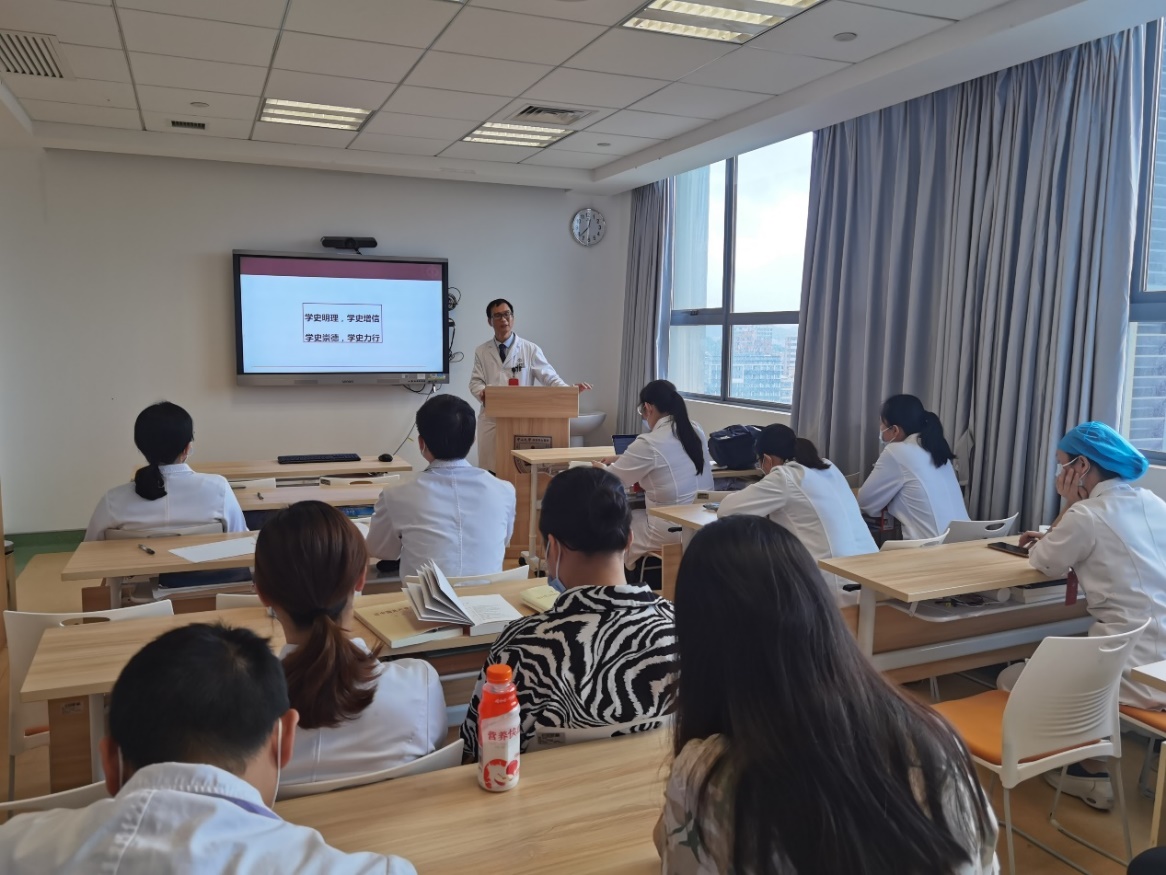 近日,中山七院临床五党支部于召开党员大会。在完成支部换届选举后,候任新一届党支部书记侯清华同志以“新征程,从头越”为主题,组织大家开展了一次党史学习教育。