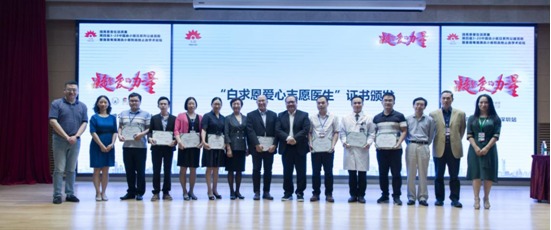 会上,白求恩公益基金会为香港中文大学威尔士亲王医院李志光教授、深圳儿童医院刘四喜主任医师、中山七院陈纯教授、薛红漫主任医师、吴顺杰主任医师,程玉才主治医师、黄俊彬主治医师和林超医师颁发“白求恩爱心志愿医生”的证书。