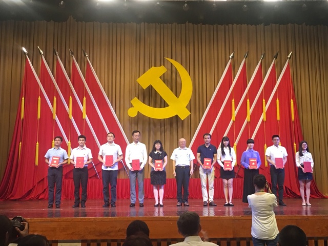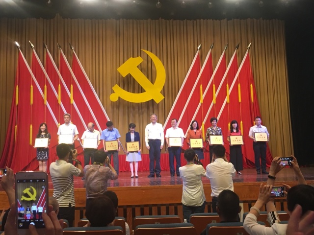 会上,学校党委余敏斌副书记首先宣读了学校党委关于表彰2017-2018年中山大学优秀共产党员、优秀党务工作者、先进基层党组织的决定。对全校443名优秀共产党员、85名优秀党务工作者、80个先进党支部和10个先进二级党组织进行表彰。其中,我院何裕隆、张常华、庞俊、杨品超四位同志荣获 “优秀共产党员”称号,苗伟同志荣获“优秀党务工作者”称号。广东省委教育工委组织处和学校领导依次为优秀个人、先进党组织代表和“微党课”比赛获奖者颁发了荣誉证书和奖牌。