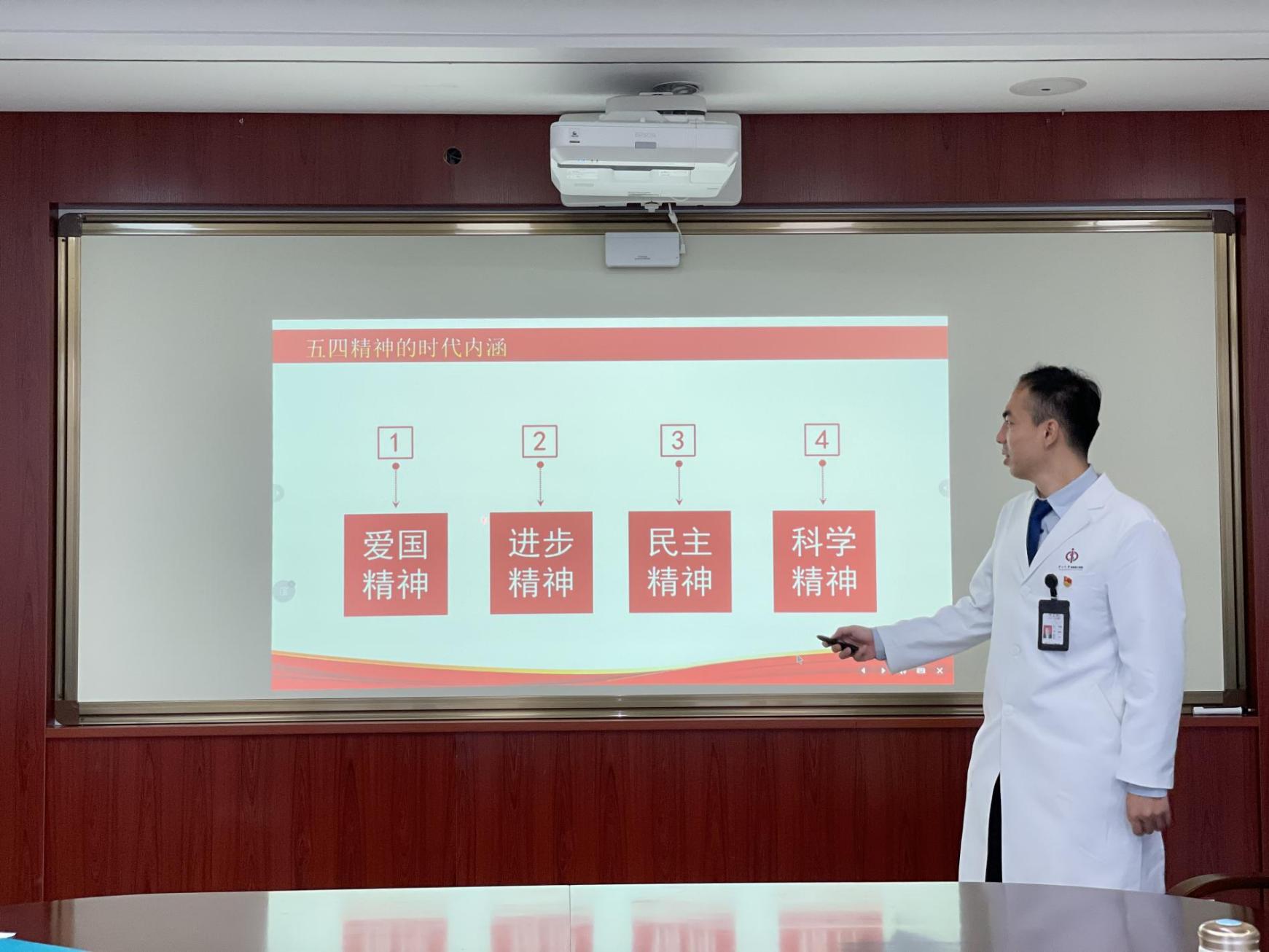 启动当日,黄炫霖同志作“弘扬五四精神喜迎建党100周年”的主题汇报。他讲到,五四运动发生在1919年巴黎和会中国外交失败的大背景下,是一次由青年发起的、彻底地反帝反封建的革命运动。它不仅是一次爱国的政治运动,更是一次空前的思想解放运动。五四运动促进了马克思主义在中国的传播,为中国共产党的成立奠定了思想基础。我们要学习五四运动“爱国、进步、民主、科学”的精神,坚定理想信念、敢于担当作为、坚持不懈、努力奋斗,建设美丽七院,建功新时代。