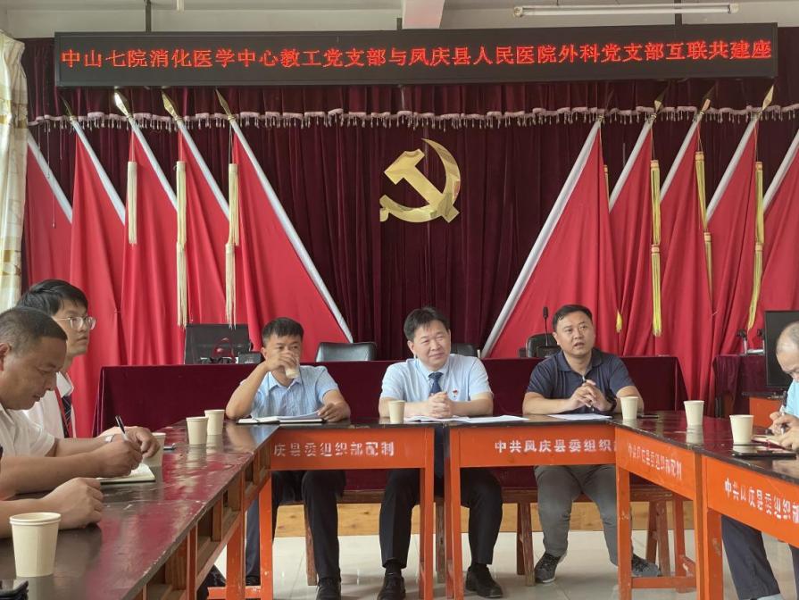 义诊结束后,双方党支部还以座谈会的形式进一步了解了干马村的基本情况,尤其是当地村民对健康生活、乡村振兴的需求。张常华同志表示,中山七院作为凤庆县人民医院的对口帮扶医院,对凤庆县人民的健康需求责无旁贷。目前通过中山七院与凤庆县人民医院联合开展的‘凤庆县胃癌精准化三位一体防治’项目,可以帮助当地人民群众发现消化道早癌,对凤庆县经济、社会、健康的发展具有重要意义。消化医学中心教工党支部还将定期、不定点地推进乡村一级的健康教育,不仅满足人民群众对健康的需求,还要助力乡村振兴。