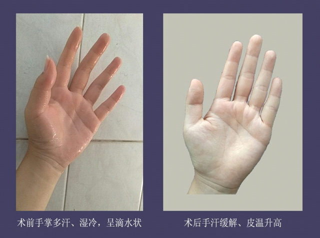 “手汗症”具体的发病机理尚未完全明确,国内外多数学者认为是由于交感神经过度兴奋而导致的手部位汗腺过度分泌所致。汗液过度分泌虽然对身体健康没有影响,给他们身体和心理带来了无尽的烦恼。为了对付手汗症带来的不适,患者常自行使用止汗剂,如口服“益气敛汗散”等药物,或外敷收敛剂等,但是都只能暂时缓解症状,不能达到根治的目的。通过手术,小张终于得到了持续的“无汗”权。“不过,有些患者手汗症术后会出现手部太干燥的情况,尤其是冬天,建议多擦护手霜防护。”李昀副教授说道,“另外,患者术后可能出现代偿性多汗,胸背部、大腿等处流汗会增多,但是绝大多数患者都能接受。”