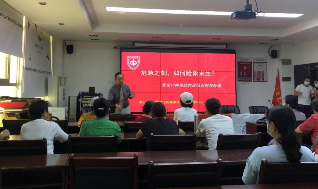 活动第一站由支部书记廖晓星同志带队,为社区民众带来了精彩的“危急之刻,如何险象求生”常见10种急症的现场识别和处理,包括急性脑血管意外、急性心肌梗死等早期识别和处理。教学内容干货满满,现场氛围非常热烈。廖书记表示,随着经济的发展,社会的进步,人们的健康意识明显提高。各种急危重症、意外伤害时常发生,威胁着人们的生命和健康,意外伤害已成为危害人类健康的全球性公共卫生问题。我国每年因意外伤害死亡的患者约70万人,是居民死亡原因的第4位或第5位。公众急救知识的普及情况对降低突发事件和灾难发生时的伤残率、提高生存质量起到了重要作用。急救知识的普及使公众能得到及时、有效的现场自救和互救,为患者赢得宝贵的抢救时机,提高抢救成功率。