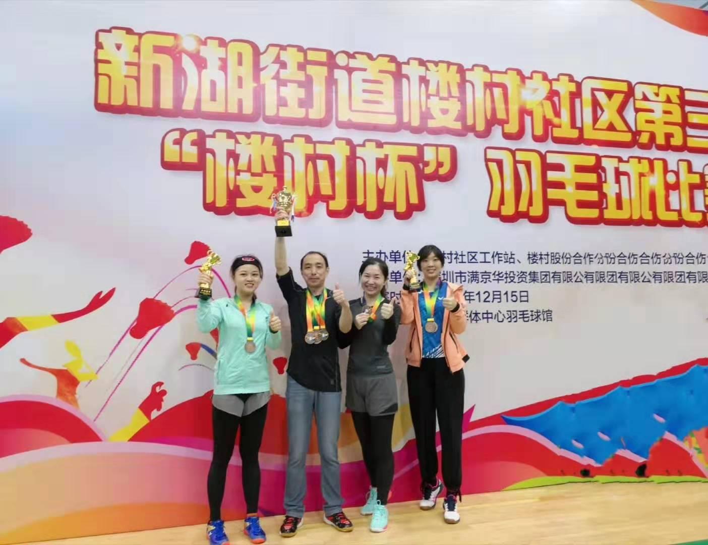 12月15日,新湖街道楼村社区第三届“楼村杯”羽毛球赛在光明区群众体育中心举行。我院羽毛球协会王建新会长携羽协队员参加了本次比赛,并取得佳绩。
