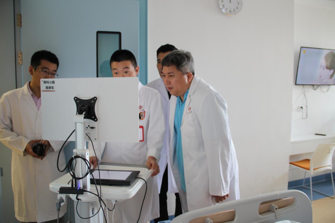茅剑平教授还到我院骨科病房进行查房。在骨科魏富鑫副主任及骨科医生们的陪同下,茅剑平教授详细了解了患者的手术情况和术后恢复情况,对中山七院骨科精湛、专业的医疗技术水平给予了高度评价,并结合北京积水潭医院的诊治技术和经验,为我院骨科患者下一步治疗提出了宝贵意见。