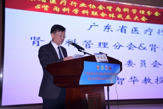 郑智华教授代表广东省医疗行业协会肾内科管理分会第一届委员会发言,表示将与协会全体委员一起,践行总会宗旨,积极推进学科联合体对接县级医院学科建设直通车的工作,推动以县级医院及民营医疗机构学科医疗水平帮扶为核心的学科建立和培训工作,促进区域医院学科人才成长,提高基层临床综合能力。