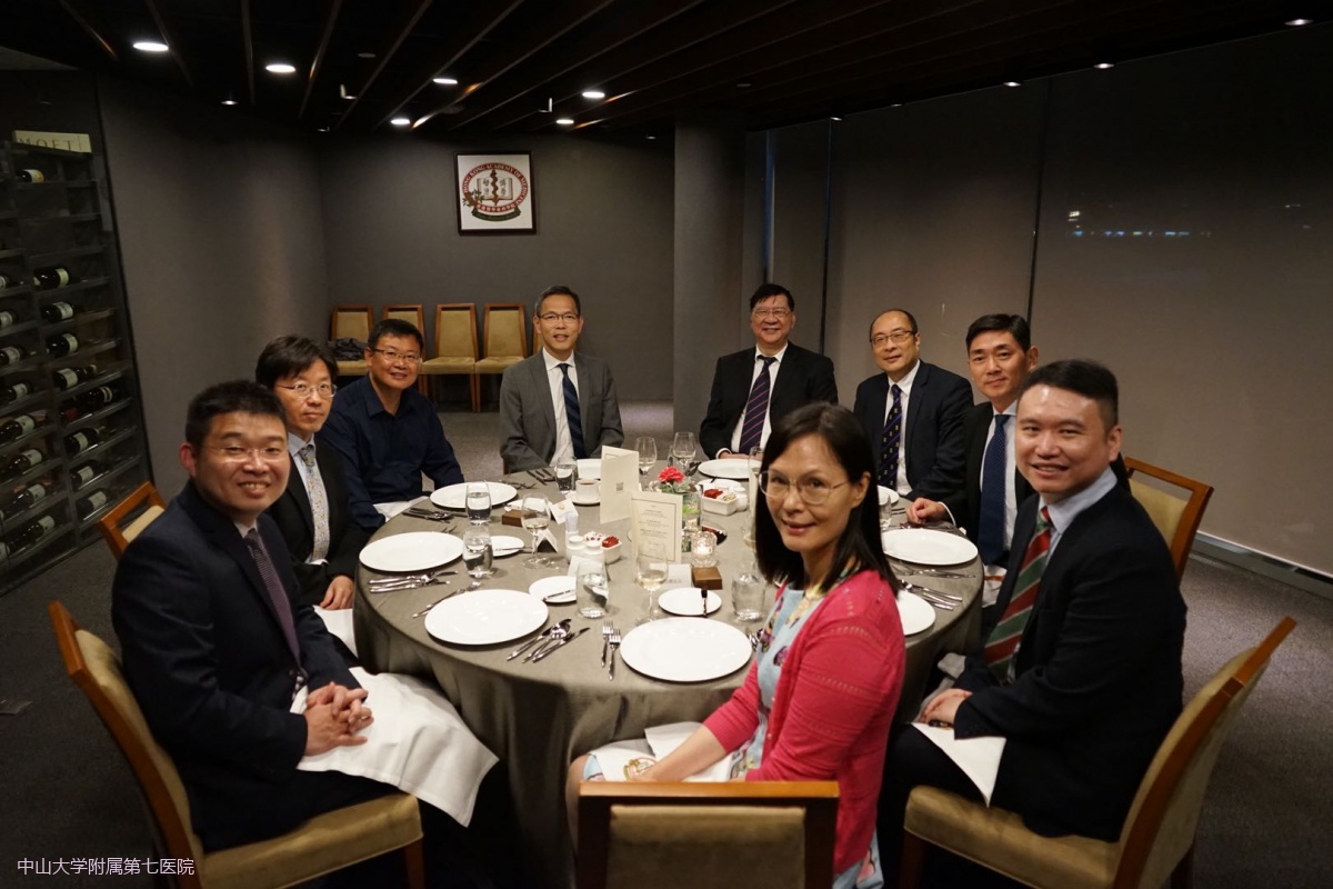5月3日,秦鉴副院长和唐丽娜处长代表中山七院出席了香港医学专科学院的欢迎晚宴。香港医学专科学院刘泽星主席、刘楚钊副主席、郑仲恒行政总监、周雨发名誉司库、黄致生编辑,以及广东省医师协会林曙光会长、广州医科大学全科与继续教育学院刘宇平副院长出席了晚宴。深、港、穗三地代表就粤港澳地区的建设与发展、住院医师和专科医师规范化培训以及下一步的学术交流进行了广泛的探讨。