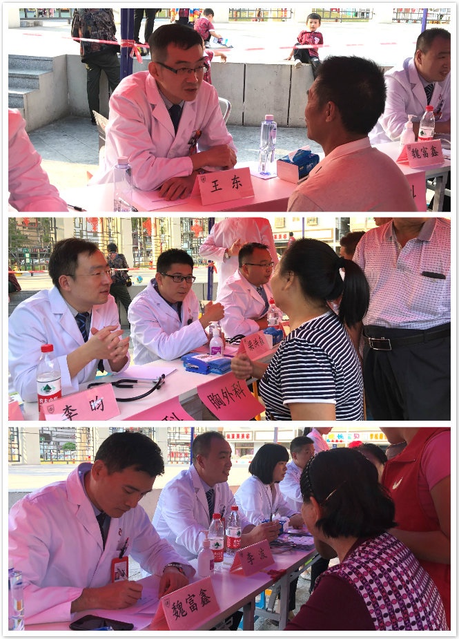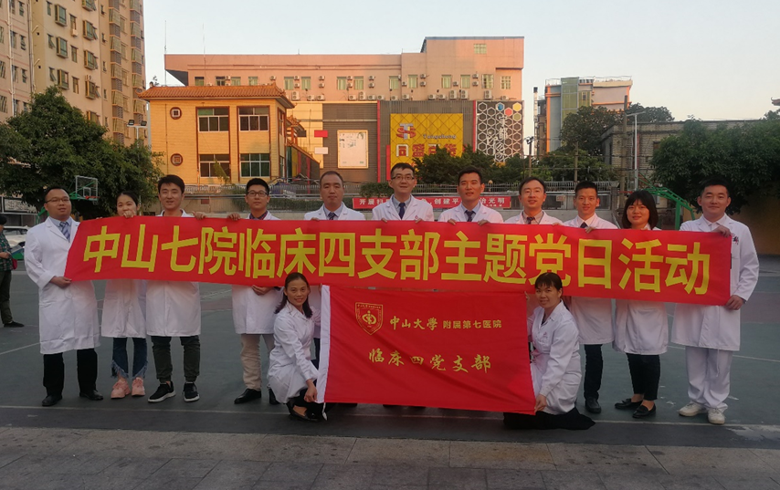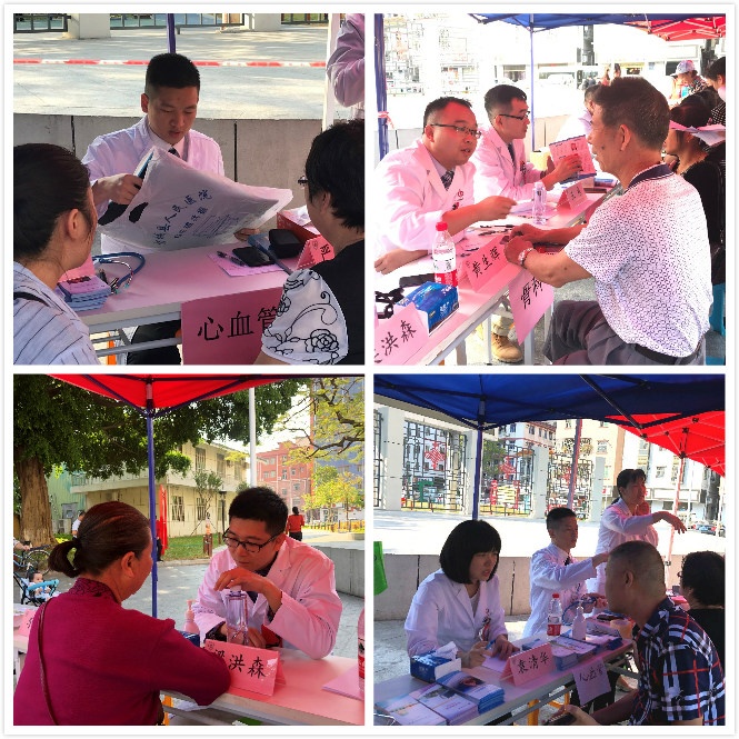 为落实“不忘初心、牢记使命”主题教育要求, 为群众送温暖、献爱心,2019年11月8日下午,临床四党支部书记王东同志带领支部党员前往光明区李松蓢社区开展“扎根光明,服务基层”义诊活动。临床四党支部一行13人,结合李松蓢社区文化公园的地理环境特点及支部党员科室分布情况,开设骨科、心内科、胸外科三个专科义诊。