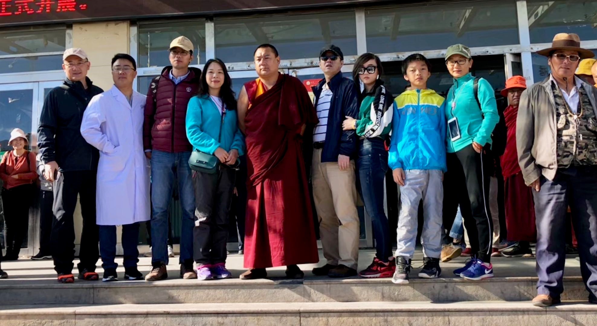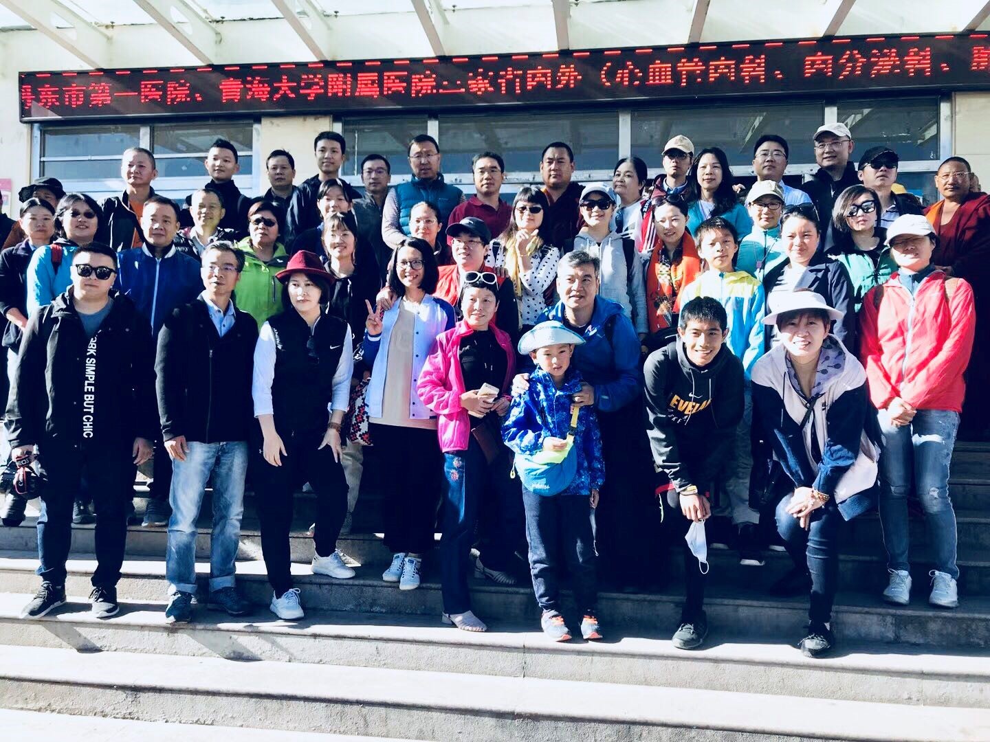 “玉树光明行”全体合影,成员包括中山七院医疗组,中山眼科中心“白内障摘除术”医疗队及“依视路”儿童视力检测配镜组及多位社会志愿者共50余人