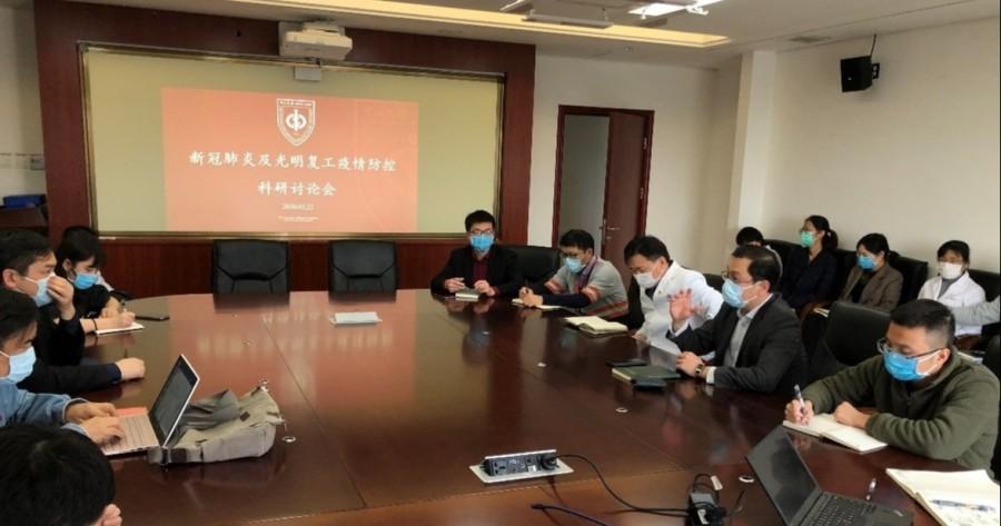为保障光明区企业复工复产,我院承担了光明区百强企业复工复产的疫情防控和医学服务任务。疫情防控科研讨论会上,科研中心和各部门就科研课题创新与设计、数据收集与分析以及开展科研实验等展开了深入讨论,切实将疫情防控、医学服务与科研工作有机结合,将社会效益发挥最大。科研中心袁金秋副研究员和肖云军副研究员担任此次企业复工复产疫情防控工作流行病调查小组的组长,他们希望在做好防疫工作的同时,为医学科学研究提供良好的数据支持。