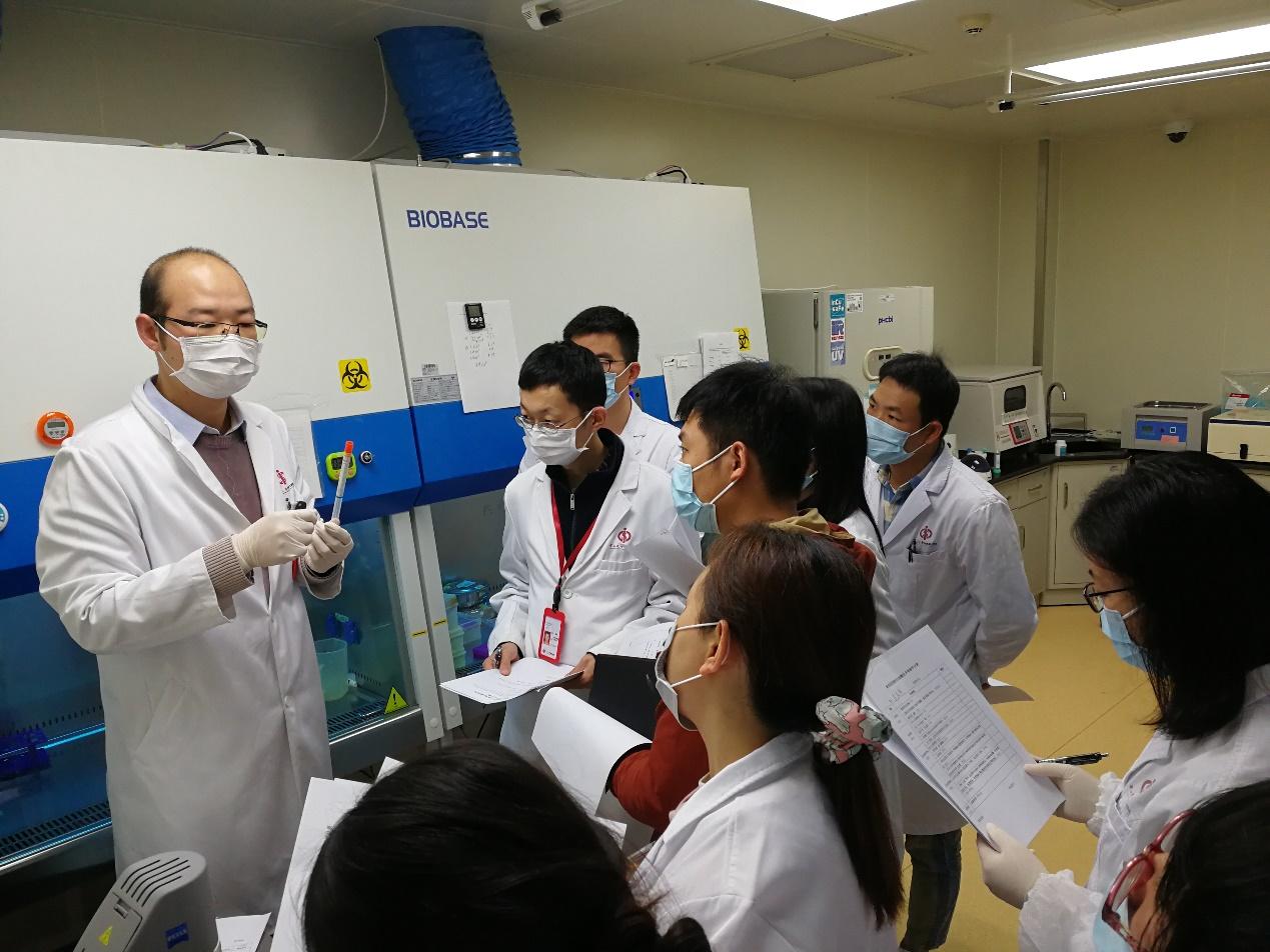 疫情发生期间,因新冠病毒核酸PCR检测数量增加,为缓解检测压力,我院科研中心党支部大力号召有PCR检测上岗证的同事加入检测队伍。随即成立两支由10人组成的支援队伍,并迅速完成新冠病毒核酸检测的相关培训。科研中心李亮博士后是第一个报名参加检测支援队伍的成员,在培训完后,因其妻子临近生产,不得已被替换下来,李亮博士表示:后期如有需要,我依然会奋勇争先,投身一线!