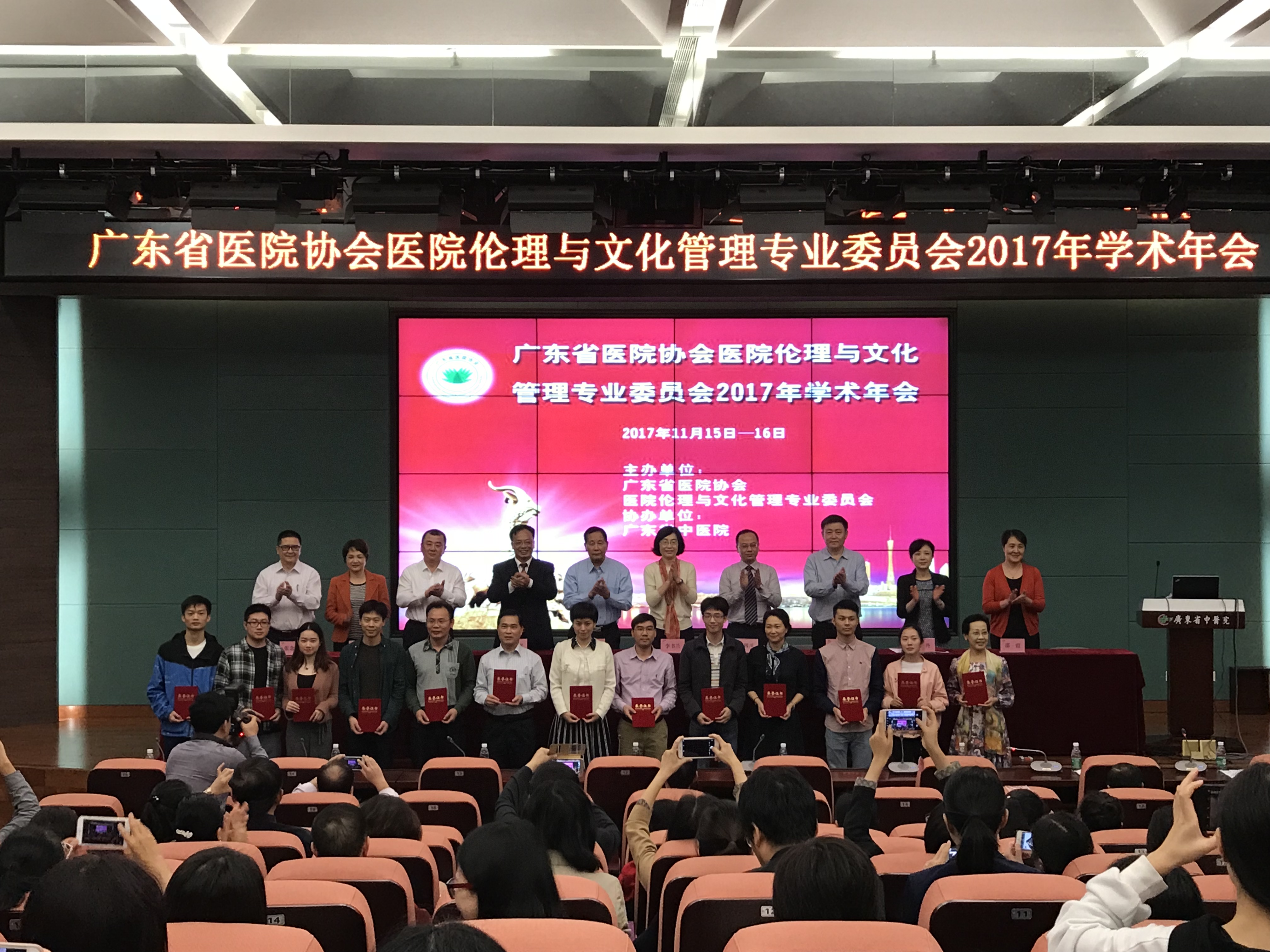 近日,广东省医院协会医院伦理与文化管理专业委员会2017年学术年会在广东省中医院举行。全省医院党建和医院文化战线200多人参加会议,广东省医院协会终身荣誉会长张衍浩出席会议并作讲话。大会首先对该专委会组织开展的“深化医院改革 推进健康事业”主题征文进行了评选表彰。我院党委副书记、纪委书记陈起坤同志主持的课题组选送的三篇论文均获好评,其中:《新形势下高校附属医院文化建设和党建工作的关系研究》获优秀论文一等奖;《高校附属医院文化建设的现状和存在问题及其对策研究》和《高校附属医院党建工作的现状和路径探讨》均获得优秀论文二等奖。