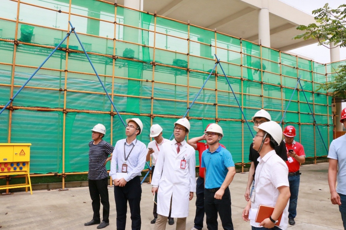 潘逸航副院长一行对院内的在建工程进行安全生产督查,分别排查了工务署承建项目电梯钢结构高层吊装工程、工务署承建项目连廊封闭工程、病理科分子实验室改造工程、血液科造血干细胞移植中心改造工程、药学部精准药学实验室改造工程、科研中心等,并向相关科室的工作人员强调了安全生产的重要性和必要性。