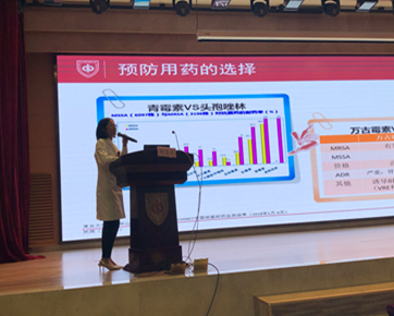 我院药学部周本杰主任、王黎青副主任和刘玉兴主管药师分别从抗菌药物应用管理、常见抗生素的作用特点和临床应用、门急诊如何合理应用抗生素以及围术期预防用药等方面进行了讲解,以期增强全院临床医师合理使用抗生素的意识,强化抗菌药物的管理。