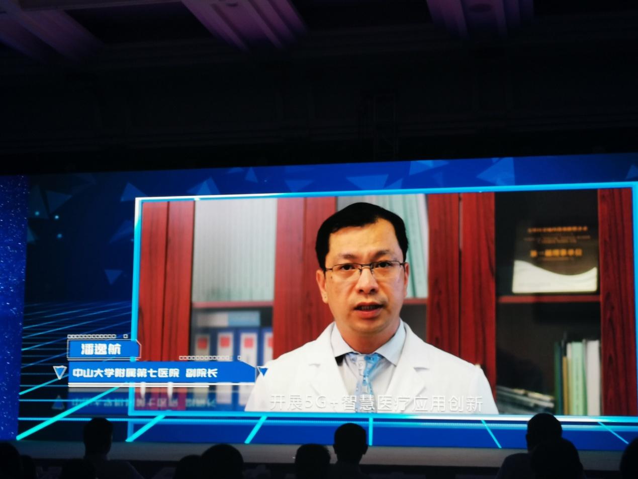 大会举行了5G+赋能湾区授牌仪式,向中山大学附属第七医院、广发银行股份有限公司、深圳市机场(集团)有限公司等8家单位授予“5G湾区产业标杆”称号,我院作为唯一一个医疗领域单位获得此项荣誉,显示了我院在智慧医院建设上的前瞻性与示范性。潘逸航副院长表示,自中山七院与中国移动、中国移动(成都)产业研究院联合创建“智慧医院5G创新应用联合实验室”以来,医院的信息化建设规划与发展理念得到丰富与拓展,此次非常荣幸代表医院领取“5G湾区产业标杆”牌匾,中山七院将继续携手中国移动开展5G+智慧医疗应用创新,实现5G专网与医疗边缘云落地,加速推动医疗行业的智慧化转型。