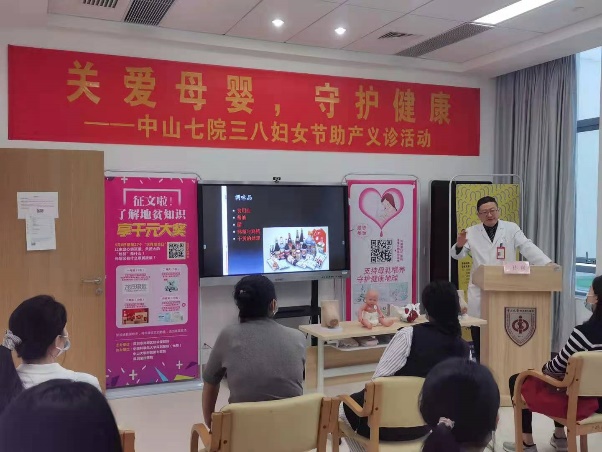 妇产科主任李田表示本次义诊活动旨在让更多的准妈妈们掌握孕期知识,协助顺利分娩。同时,她还向大家推荐介绍了中山七院妇产科的“女子柒柒”公众号,希望公众号的产科科普文章和视频能帮助各位孕妈妈们了解孕期保健的相关知识,让各位孕妈妈能轻松、愉快地度过孕育至分娩的阶段。