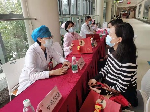 因疫情防控,此次义诊现场答疑环节设在宽敞明亮的产科门诊外走廊,由妇产科、营养科等专家分别针对孕期营养、孕期保健、孕期运动、分娩指导、产后盆底康复、母乳喂养等向各位孕妈妈和家属朋友们一对一进行义诊咨询,解答孕妈妈们的疑问,帮助她们树立信心,促使孕育及分娩过程更加顺利。