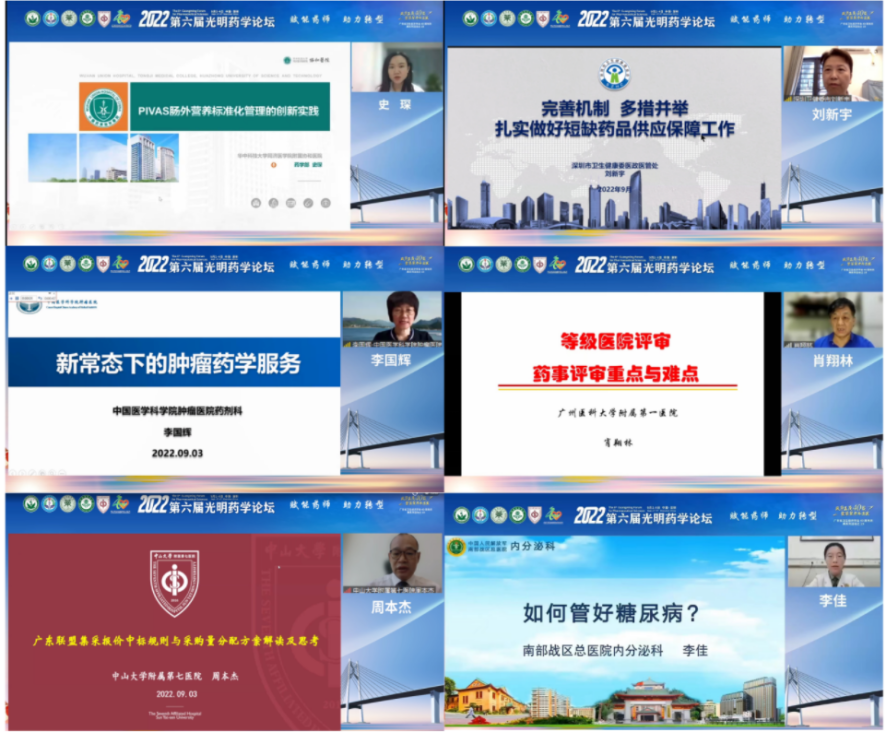 此外,大会还设置了中药创新发展与制剂研发、精准药学、医院药事管理、清华药事管理班、药学科研与学科发展以及临床试验共6个分论坛分别进行交流。6个分论坛邀请到了广东省药监局、国家卫健委老年医学研究所、中国医学科学院肿瘤医院、北京大学第三人民医院、中国药科大学、南方医科大学、上海交通大学胸科医院、中日友好医院、中国人民解放军306医院、中山大学药学院(深圳)及各附属医院等兄弟单位的专家学者,分别聚焦于中药创新及新药研发、精准药学、医院药事管理、药学科研、学科发展及临床试验等方面热点话题进行了全方位、多维度、深层次的学术交流。