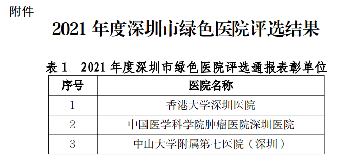 为贯彻落实上级部门文件要求,深圳市卫健委组织开展了2021年深圳市绿色医院评选工作,这也是深圳市首次举办绿色医院的评选,倡导绿色健康的理念。