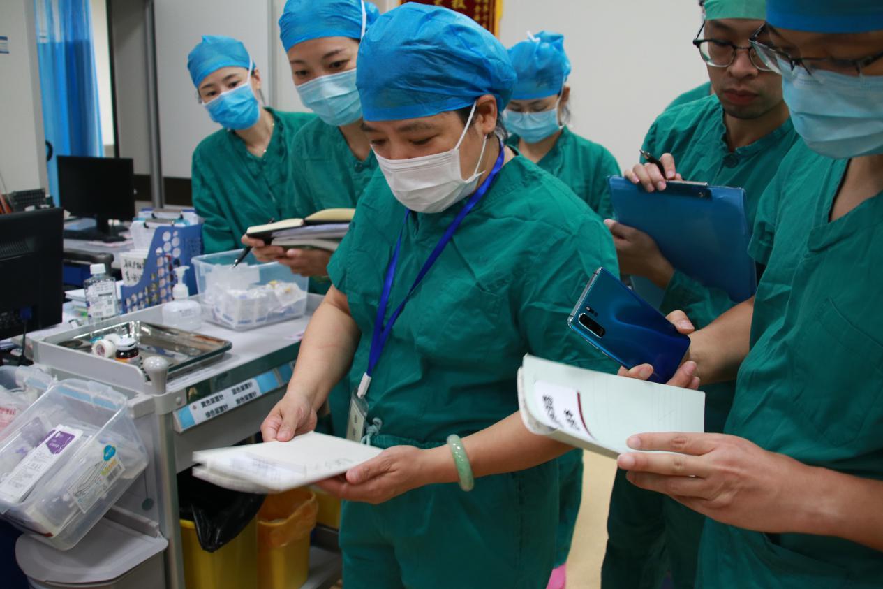 除了现场授课外,评审专家组还分为两组到现场对手术麻醉中心的台账、环境等进行检查,并模拟三甲医院评审查房。手术室组龚凤球主任护理师查看手术间以及各个区域,从环境布局标识、消防通道是否合格到安全隐患的排查等方面来深究感控工作和安全管理是否到位,流程和相关制度是否完善等其他存在的问题,同时对三甲评审条款进行解读,理清了医护人员的思路,获得了一致好评;麻醉护理组陈旭素副主任护理师到复苏室考察,通过麻醉护理的“看、问、追、查、记”等方法进行评审交流。