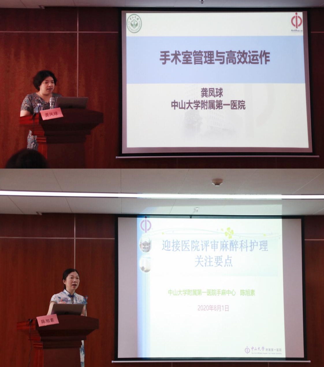 中山一院龚凤球主任护理师和陈旭素副主任护理师分别就手术室高效运作的经验及如何迎接医院评审麻醉科护理关注要点进行授课。讲座内容既开拓了与会人员的视野,转变了陈旧的观念,让大家对医院接下来的三甲迎评工作充满了信心。