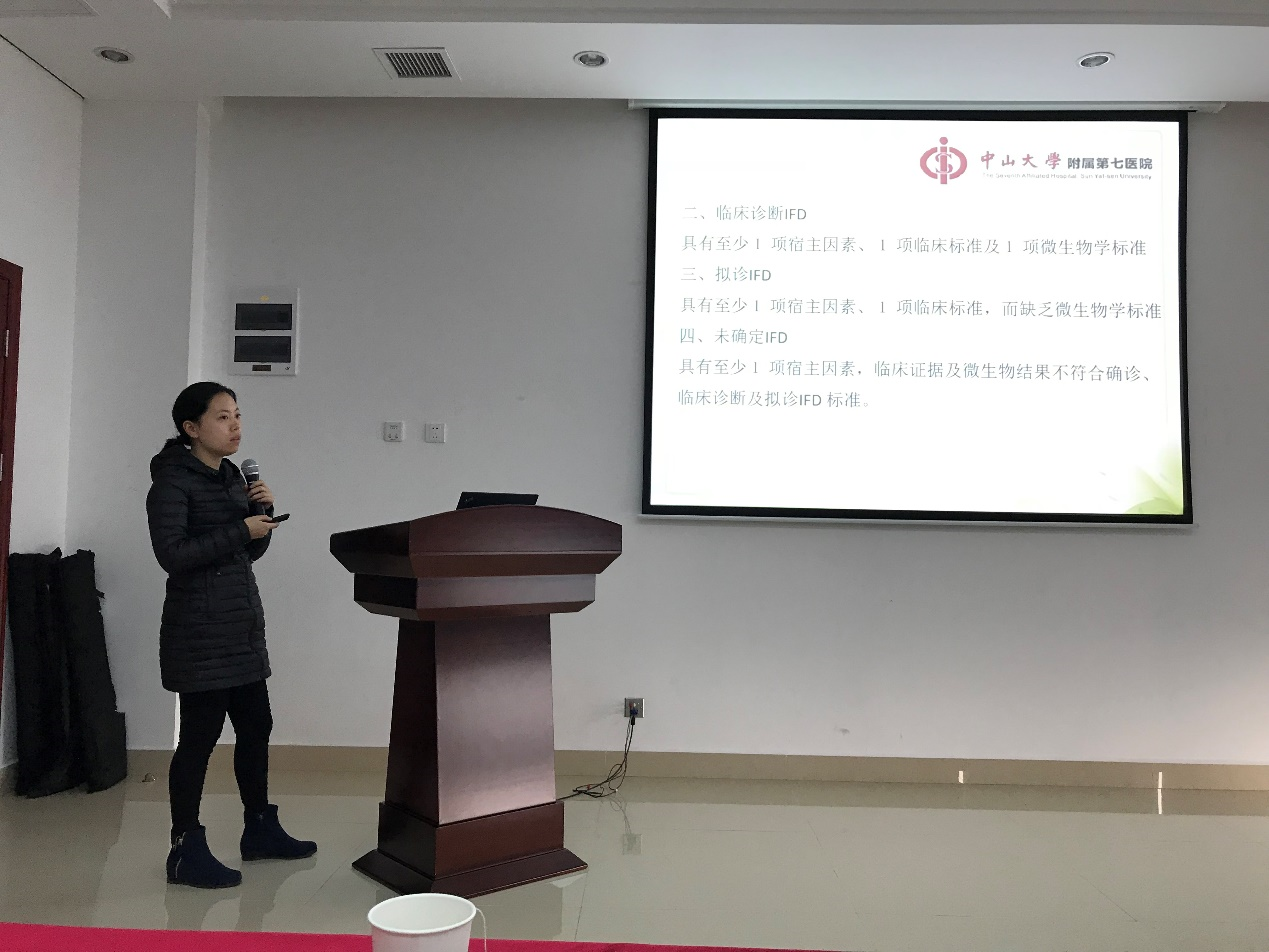 随后,肿瘤科黄珊主治医生就恶性肿瘤侵袭性真菌感染(IFD)的诊断、辅助诊断方法、影像学特征、治疗及药物选择做了详尽介绍。儿科陈纯主任、科研处邓宇斌教授分别就IFD的诊断要点和IFD的病理诊断分享了各自的经验。