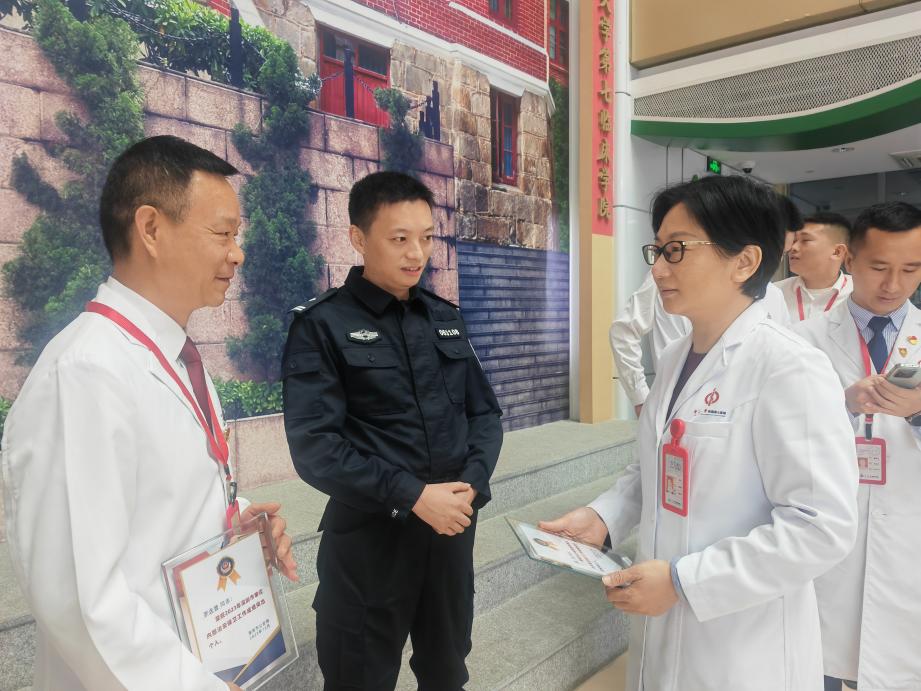 在我院授牌现场,刘遵映警长指出,警察和医生都是为“大家”而舍“小家”,在自己的岗位上为广大群众守护着生命的安全,但目前总体的医疗环境仍存在隐患和矛盾。对于违法犯罪行为,公安机关将责无旁贷地依法予以严厉打击,认真履行警察职责,确保医院医护人员的人身安全,进一步推动警医的紧密合作。