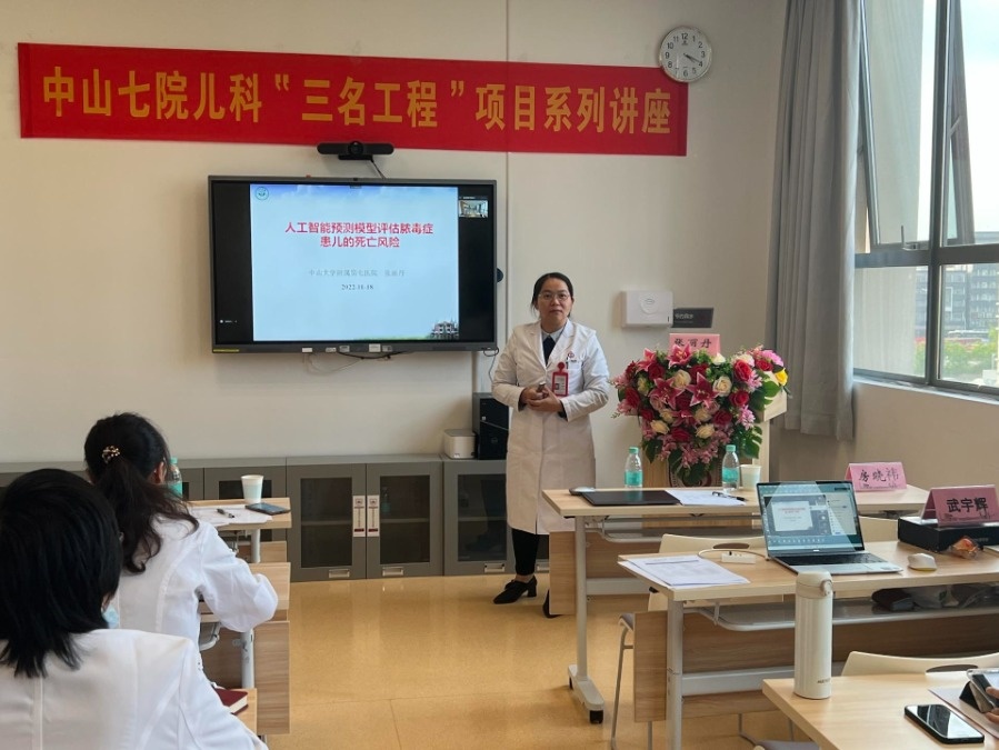 儿科副主任(主持工作)薛红漫分别对嗜血细胞综合征的发病机制、诊断和治疗的内容进行详细讲解,授课内容生动形象。新生儿科房晓祎主任运用详细的临床案例生动地为大家展示危重儿童的早期识别和急救。PICU张丽丹副主任为大家分享如何通过人工智能预测模型来准确快速评估脓毒症患儿死亡风险,内容新颖丰富。