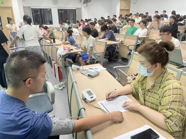 首堂课是《健康管理概论》,朱云晓主任简述了健康管理概念、发展情况、基本策略、发展历程、学科建设和产业状况等,阐述了大学生健康管理的内容及意义。同时,将理论与实践有机结合,通过心理问卷、亚健康量表等方式对同学们进行身心健康评估,通过专业体检设备开展生物指标检测,并指导学生操作人体成分分析仪,测量血压,引导学生开展自身健康管理。