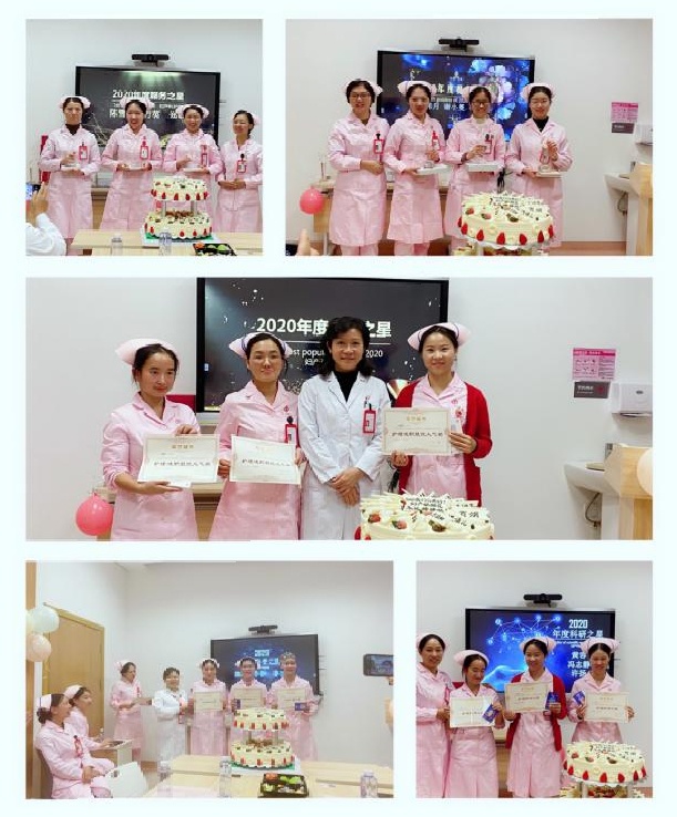 嘉宾们为护理人员颁发妇产科2020年度述职最佳人气奖、护理服务之星、最美提灯女神、护理科研奖、护理科普之星