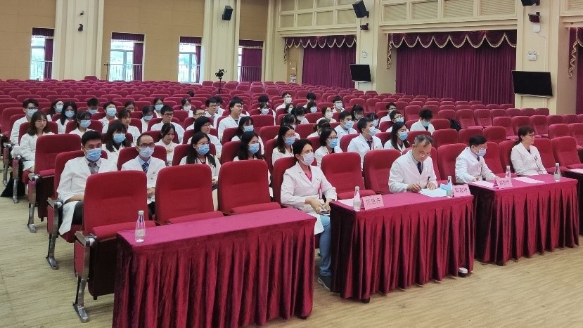 仪式上,陈书记首先对完成本次夏令营的45名中山大学医学院临床医学专业的学生致以最热烈的祝贺并表示:医院一直重视“三基、三严、三早”的教学理念,通过本次夏令营,同学们初次接触和体验了临床工作,并对“医生”的角色有了更深刻的认知,同时也了解到了科研研究者的日常工作,希望同学们能够以本次夏令营作为自己医疗、科研生涯的起点,树立远大目标,逐渐成长为优秀、卓越的医学人才。